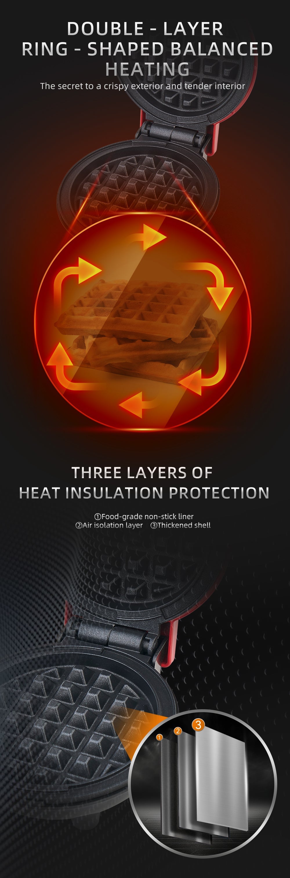 Datorită indicatorului luminos inteligent, știi exact când aparatul este pregătit pentru utilizare, iar designul compact și elegant, de culoare roșie, îl face ușor de integrat în orice bucătărie. Ideal pentru waffles crocante la exterior și pufoase în interior – în doar câteva minute!