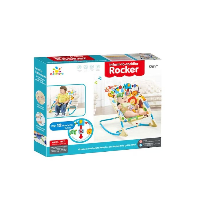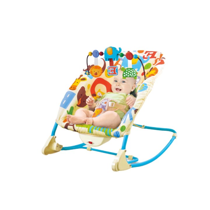 Balansoar si scaun, AT PERFORMANCE®, 3 in 1 cu Spatar reglabil, sunete si vibratii calmante pentru bebelusi si copii, Albastru.