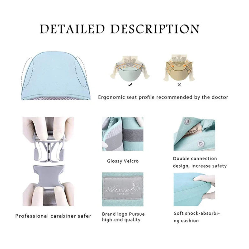 Recomandat de medici! Este un nou tip de instrument pentru cresterea copilului, cu un suport tip scaun legat de talia mamei. Proiectat ergonomic, sigur, confortabil si la moda. Marsupiul pentru talie poate fi folosit pentru a sta fata in fata, transport orizontal, transport lateral si alte functii pentru a satisface nevoile bebelusilor de diferite varste. Scaunul pentru talie poate usura in mod eficient povara pe umeri si talie atunci cand tineti bebelusul cu mainile goale.