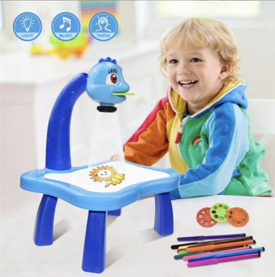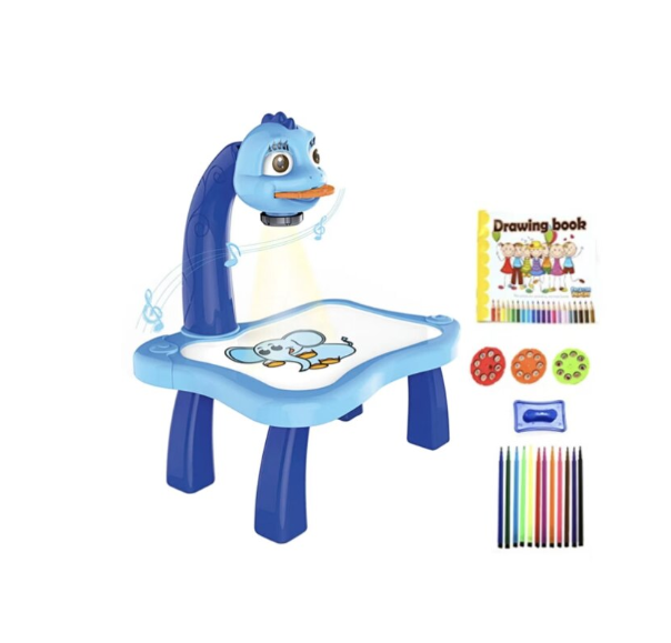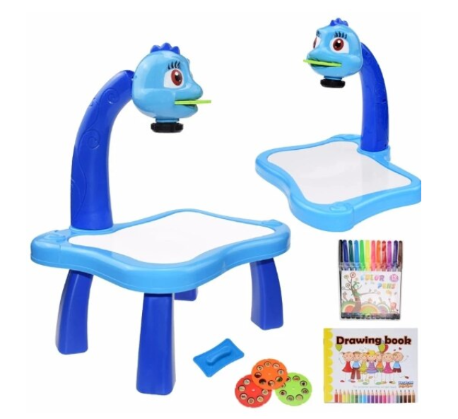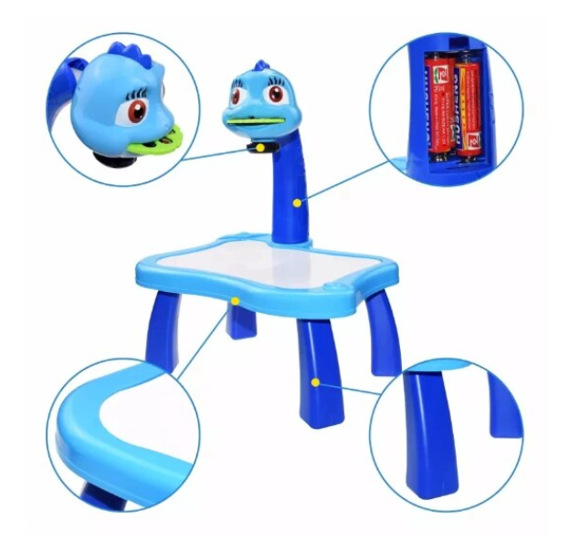 Una dintre cele mai interesante caracteristici ale acestei mese de desenat este proiectorul integrat. Copiii pot utiliza proiectorul pentru a proiecta imagini interesante si amuzante pe suprafata de desen, iar apoi pot desena conturul acestora cu usurinta. Proiectorul poate fi ajustat pentru a schimba dimensiunea imaginilor si a oferi o varietate de optiuni de desen.