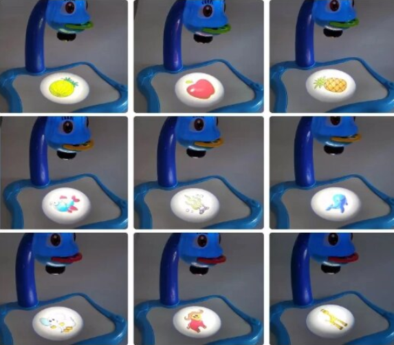 Pe langa aceste caracteristici, masa de desenat vine insotita si de un set de 24 de imagini care pot fi proiectate cu ajutorul proiectorului. Aceste imagini sunt variate si includ personaje amuzante, animale si scene din natura. Copiii pot folosi aceste imagini pentru a-si inspira creativitatea si pentru a-si dezvolta abilitatile de desen.