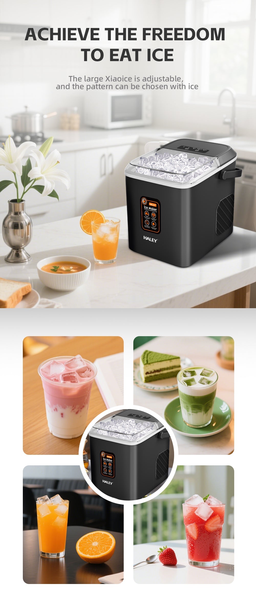 Răcorește-ți băuturile în orice moment cu Mașina de făcut Gheață HALEY, compactă și eficientă, ideală pentru acasă, birouri, baruri mici sau petreceri. Această mașină produce până la 12 kg de gheață pe zi, rapid și fără efort, oferindu-ți cuburi proaspete la fiecare ciclu.