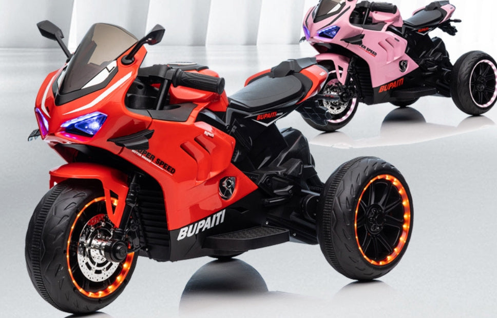 Oferă-i copilului tău o experiență unică de condus cu motocicleta electrică AT PERFORMANCE®! Cu un design modern și dotată cu lumini și melodii, această motocicletă este perfectă pentru micii aventurieri care adoră distracția și independența.