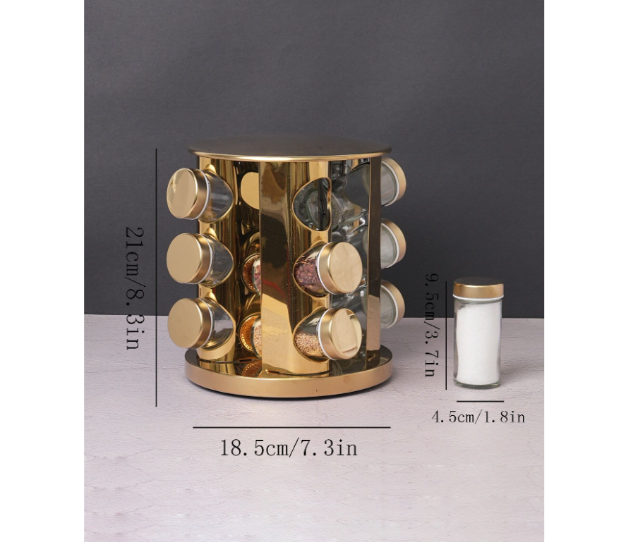 Cu acest suport inox rotativ de condimente, puteti elimina jungla de condimente depozitate in diferite cutii, recipiente. Suportul nostru pentru condimente cu 12 de recipiente este usor de utilizat, cantitatea de condimente poate fi vazuta in fiecare sticluta, astfel incat nu in timpul gatitului veti dea seama ca ingredientul dorit s-a epuizat. Bucatarii incepatori pot pune etichete pe sticlute pentru o identificare mai usoara.
