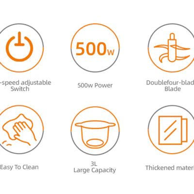 Tocătorul de alimente Haley HY-1238 este partenerul ideal pentru pregătirea rapidă a ingredientelor în bucătărie. Cu un motor de 500W și un vas generos de 3 litri, aparatul este potrivit pentru legume, fructe, carne sau ierburi aromatice.